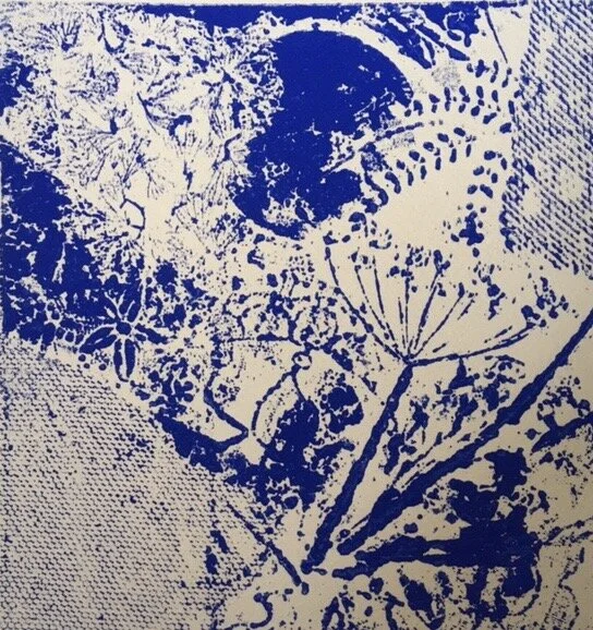 Penny has been a member of BAS for more than ten years and served as secretary for seven. Before joining she spent several years on various courses learning the techniques of watercolour. Previously she’d worked mainly with fabric using quilting and appliqué and selling via craft galleries. Her work was featured in Homes and Gardens and Country Living magazines. Painting took over as she wanted a more portable pursuit but recently she has discovered printing and collage. This fits with her love of vintage fabric, Japanese paper, found objects and ephemera. She has been experimenting with collagraphs, mono prints and lino cuts and has realised she can combine the skills she’s acquired and has been exploring using stitching, printing and painting together in her work. She thinks of herself as a designer, maker rather than an artist.