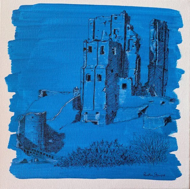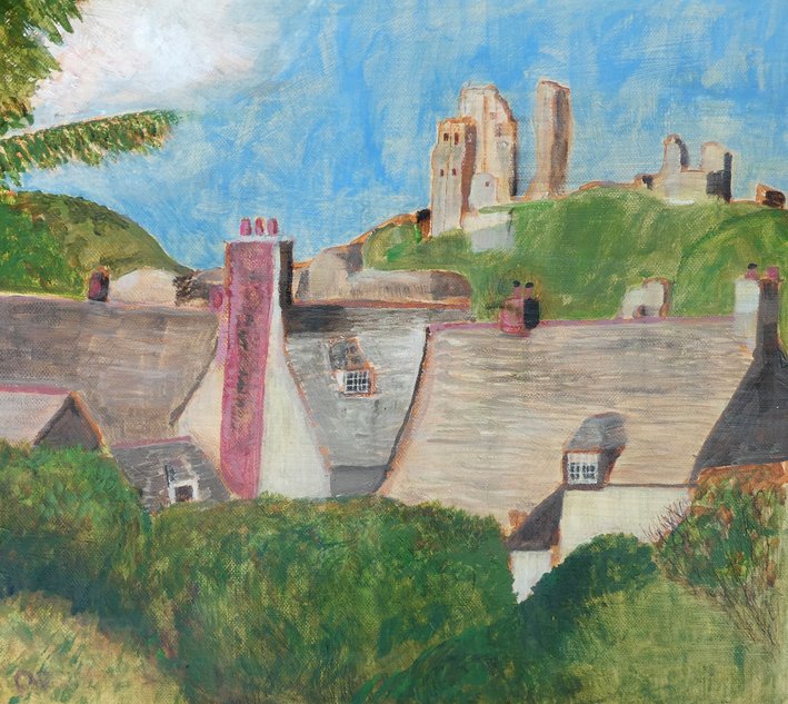 The Castle from Station Approach by Carolyn Newman, acrylic, 40 x 40 cm