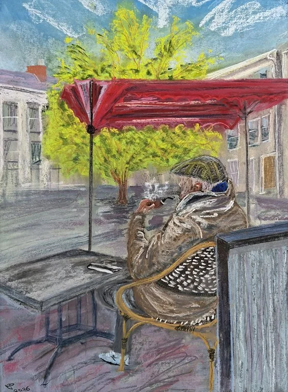 The Last Pipe Smoker by Tony Plaskett, pastel, 50 x 40 cm
