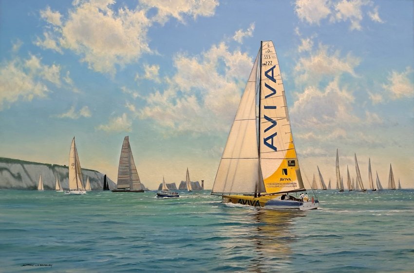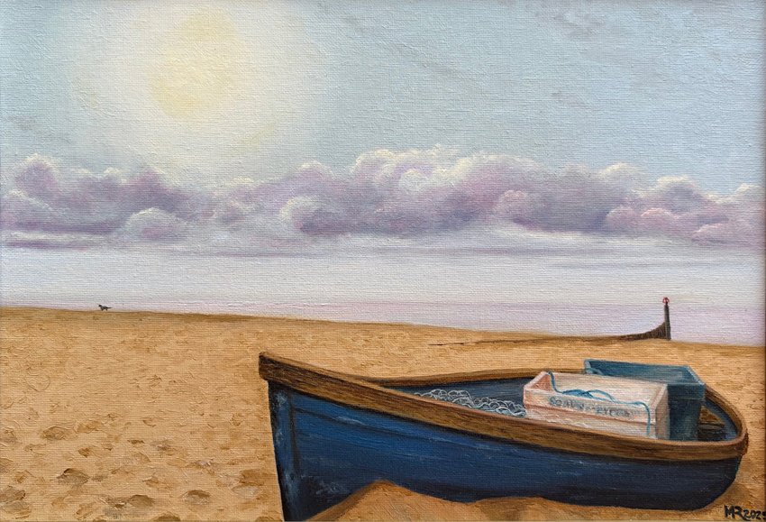 Fishing Boat at Alum Chine by Mike Richardson, oil on canvas board